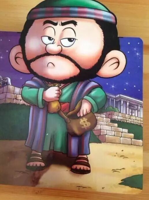 你好!我是犹大。我爱钱财比任何东西还要多!我感谢耶稣拣选了我做他的门徒,我还负责保管弟兄们公用的钱袋呢!我爱钱财,但我也爱耶稣。我承认曾经私自取用钱袋里的金钱。是的,我为了30块银元便出卖了耶稣。我后悔,但我没有勇气求耶稣原谅我。