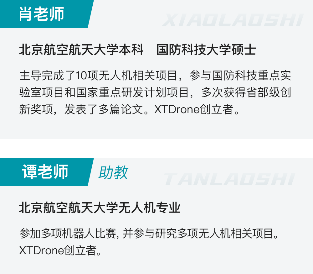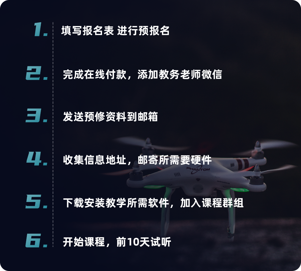 但是学员自行购买的无人机等设备与以上型号不符,我们则不提供硬件方面的答疑。
