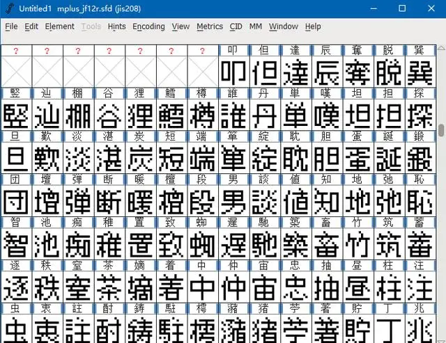 这里使用的文件同 mplus_jf12r.bdf 样放在了源码中。和第二步一样的运行方式,运行后得到一个 mplus_jf12r.sfd 的 fontforge 工程。