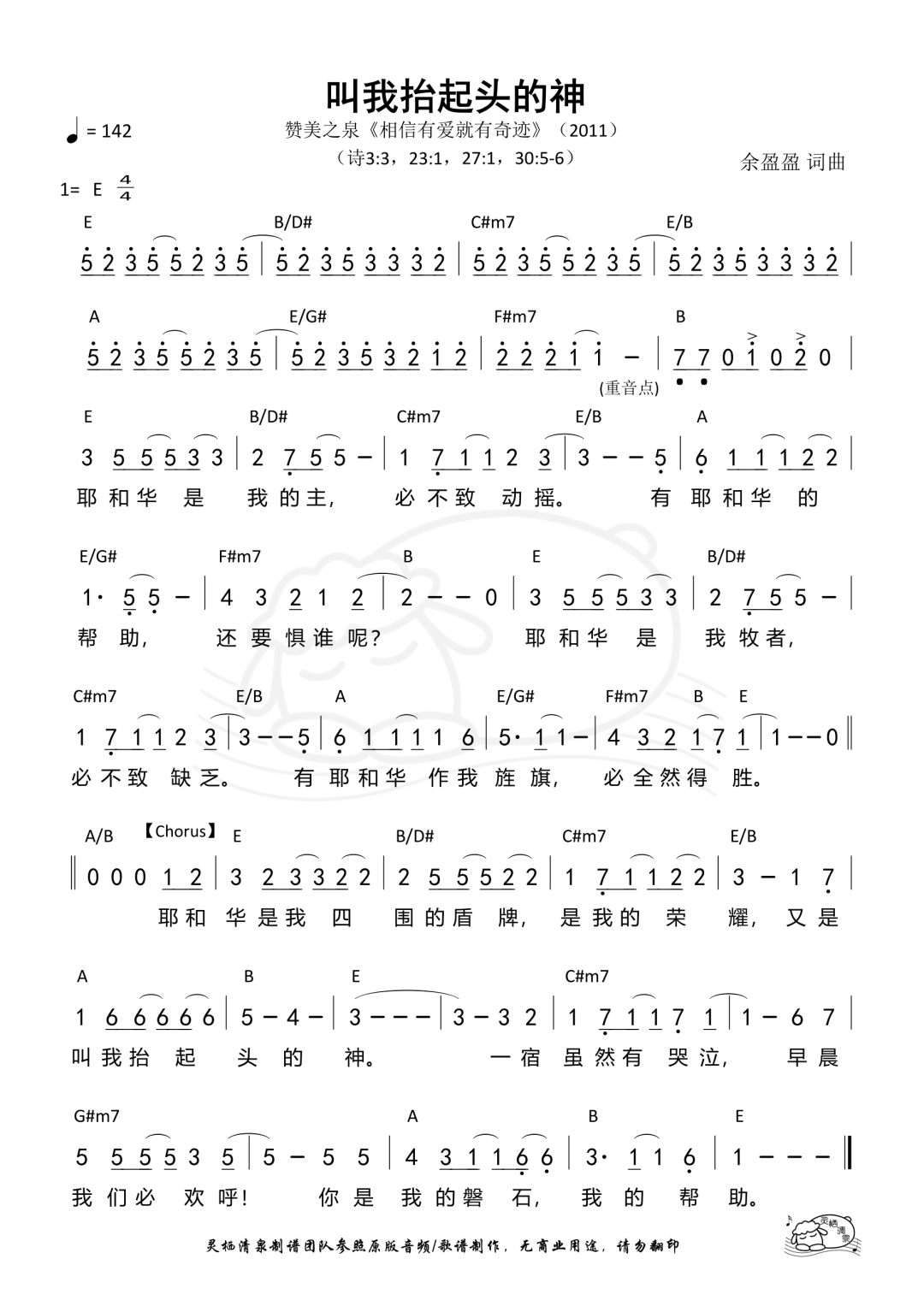 +- 首页 未整理 正文 叫我抬起头的神 ©️ 赞美之泉音乐事工 歌名 | 叫我抬起头的神 Artist | 赞美之泉 专辑 | 《相信有爱就有奇迹 》(2011) 词曲 | 余盈盈 歌词 【Verse】 耶和华是我的主 必不致动摇 有耶和华的帮助 还要惧谁呢 耶和华是我牧者 必不致缺乏 有耶和华做我旌旗 必全然得胜 【Chorus】 耶和华是我四围的盾牌 是我的荣耀 又是叫我抬起头的神 一宿虽然有哭泣 早晨我们必欢呼 你是我的磐石 我的帮助 请支持赞美之泉事工:www.sop.org/donation 赞美诗歌未整理以斯拉盛晓玫祝瑞莲生命河灵粮堂小羊诗歌Jesus Image天韵合唱团新酒使命团我心旋律JLSS BlessedThe Hope佳音 赞美之门 收藏 分享 链接