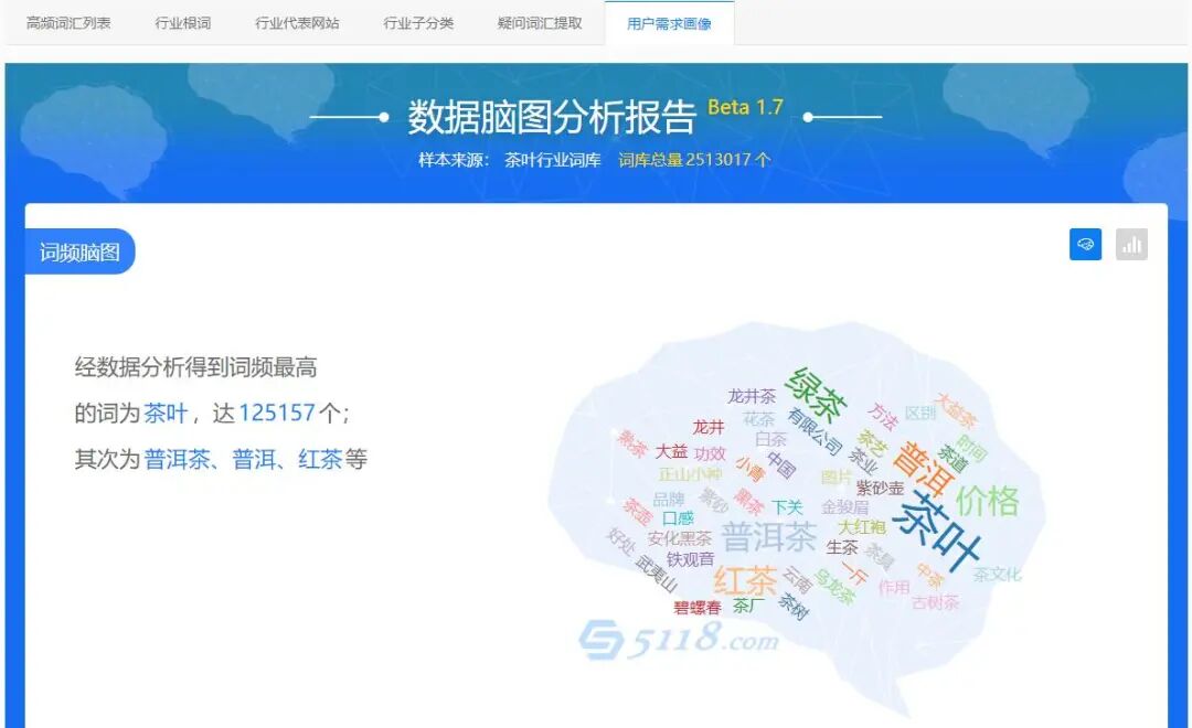5118「行业词库」汇聚各行业达亿万级的用户搜索词,多维度的数据提取,全面剖析一个行业中所有网民查询需求,让我们更准确的把握行业流量运营。