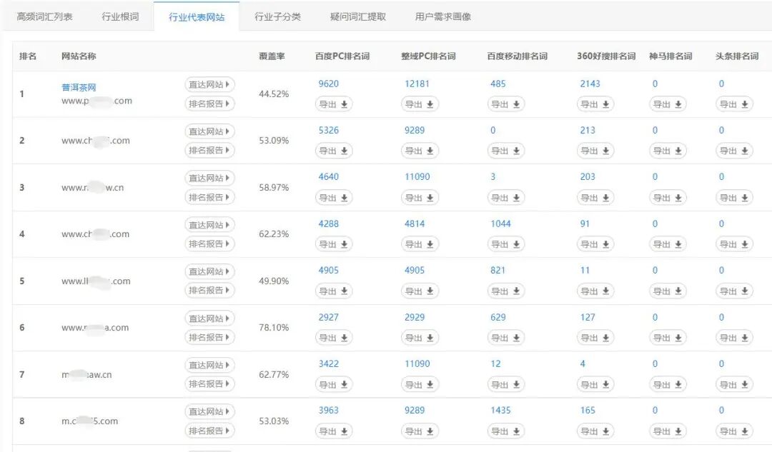 行业代表网站:是指5118通过智能算法,把属于该行业里最相关的行业网站汇聚于此,通过这些代表网站,可从中学习研究他们的排名运营策略。