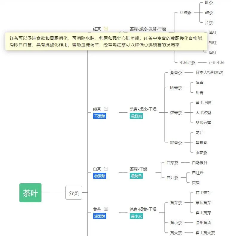 因此,第一层的茶叶分类及功效的内容便安排上。