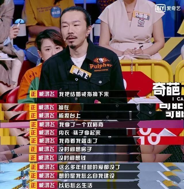 近期,臧鸿飞在综艺节目里首次回应自己的离婚传闻,表明自己是净身出户“我把结婚戒指摘下来,搁在梳妆台上。拿了一个双肩背,把内衣、袜子拿起来,背着就走了。”