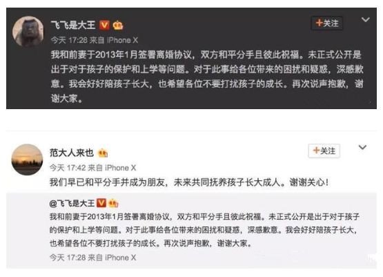 臧鸿飞之前也发过声明已经和前妻签署了离婚协议。