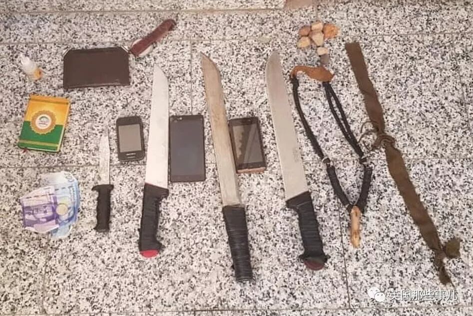 很快,警察包围了三名男子所乘的公交车,并从他们的身上找到了4把刀,其中三把是长刀——作案工具也有了。